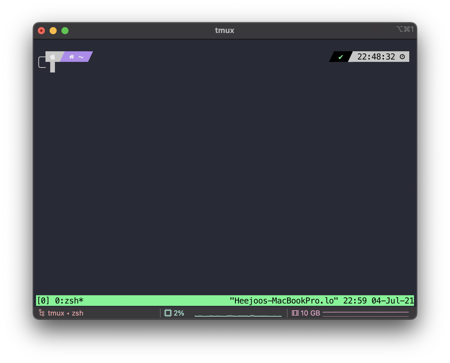 설치 후 tmux를 실행하면 아래와 같이 tmux session이 생성됩니다.